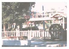 狭くなっている遊歩道を抜けると本通りに出ます。ありゃ!街の真ん中に水車小屋が有るではありませんか。古びた小屋ならgoodだが残念なことに、まだ新しいのだ。50年ぐらい待つといい雰囲気になるのでは?