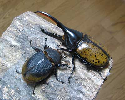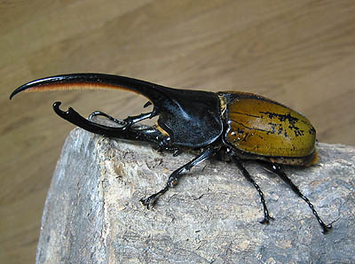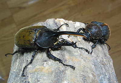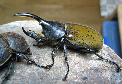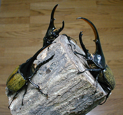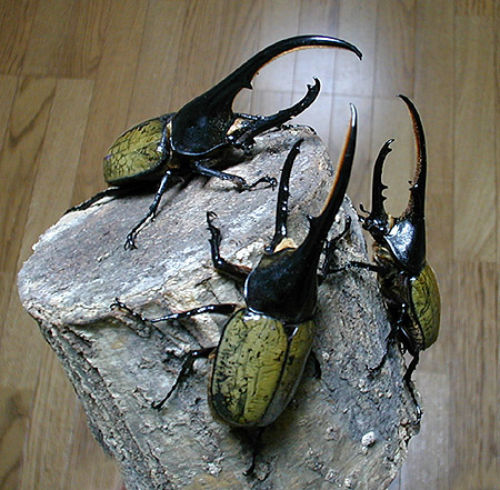 ヘラクレス ヘラクレス グアドループ F2 145mm ちなみに上の虫と兄弟です。ともに1年羽化。 エサ環境で、こんなに違うんですよ。うちだとこのサイズです。 |