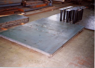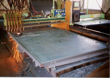 ![]() NC自動溶接機にて、自動車用プレス金型の台板を溶断中 |