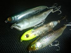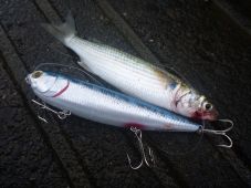 試しにベイトのサイズより少し小さめなプガチョフコブラKULBITを投げ込むと、これまで全く反応しなかった本命魚がいきなりヒット。フッキングは決まっていたハズだが惜しくもファイト中にフックアウトしてしまった。その後も周辺ではボイルが続く。捕食音からして70cmUPは確実な魚だろう。活性が高まっている内に何とか1本釣り上げたい。スーパースプークJrに戻してドッグウォークをしていると、流心で爆裂バイト。サイズはかなり大きく、ファイトしまくる。サイズは80cm級ではないか。やっと寄って来たかと思いきや、一気に水底へ突っ走った。その引きは80cmを遥かに越えていそうな力強さ。そして、何かにラインが擦れている感覚が手に伝わった瞬間、ライン切れ。姿を見せなかった良型のスズキと共に実績あるスーパースプークJrを失った。