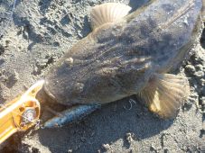 LV-MAX500を投げ続けて小一時間が経過した頃、念願のヒット。魚は引き具合からして狙っているコチっぽかったが、引き寄せる途中でフックオフ。足場の良い所へ魚を誘導しようとした際、テンションが変わって針が外れたようだ。慌てずに魚の姿を見てから移動すれば良かったと反省するばかり。ワンチャンスに掛けて、バラした付近にルアーを即座に投げ込んだが当然ながら魚の反応はない。この魚は諦めて、別の魚を探す。