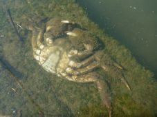 中潮の干潮狙いで真昼間の釣行。今回選んだ釣り場は、赤黒い水が溜まっているような水質がとても悪い状態で、手のひらサイズのモクズガニの死骸がアチコチに見られた。持参した東洋濾紙(現 アドバンティック東洋)のpH試験紙を使ってpHを調べてみると、驚くことにpH5の酸性だった。静岡県の公共用水域(河川)の調査結果では、この河川の数値は年間通してpH7~8の範囲内。特に問題がない一般的な河川は、pH7の中性を示すので、pH5と言うのは明らかに異常な値。本来、pH試験紙は河川水を測定するようなモノではないので、測定の誤差はあるだろう。簡易的に目安として使ってみたが、数値がどうでありモクズガニが死ぬような水質では釣果は望めそうにない。